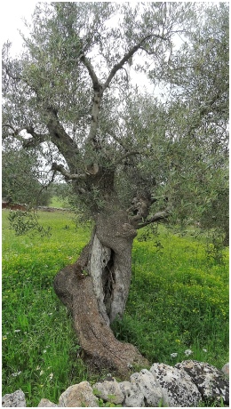 Onderweg naar Cisternino mooie oude olijfbomen, prachtige vegetatie en Trulli.