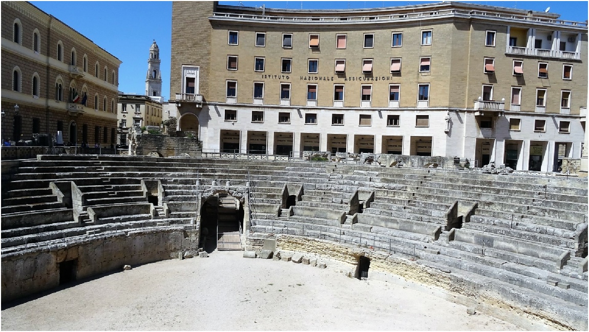 Het Romeinse Amfitheater ligt half verscholen onder het Piazza Sant'Oronzo. Het Romeinse Amfitheater dateert uit de 2e eeuw n.Chr., toen Lecce nog een Romeinse nederzetting genaamd Lupiae was. Het werd per toeval aan het begin van de 20e eeuw bij bouwwerkzaamheden ontdekt.
