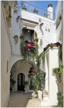Het charmante centrum van Cisternino met zijn smalle schaduwrijke straatjes, steile trappetjes, balkonnetjes vol kleurrijke bloemen en een elegant piazza, met een bijzonder mooi uitzicht over het platteland is zeker de moeite waard om te bezoeken.