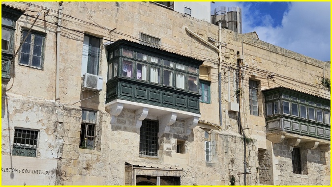 De typische houten erkers of gesloten balkons in Valletta worden een gallarija genoemd.