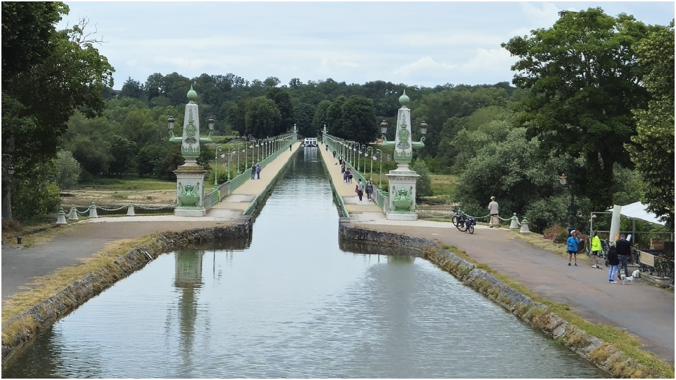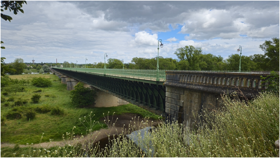 Het ontbreken van de kanaalbrug was een belangrijke hinder voor de scheepvaart. De schepen moesten het kanaal Lateral aan de Loire via de sluis van Mantelot verlaten en de Loire oversteken en na een kilometer weer door een sluis de weg door het kanaal vervolgen. De oversteek was niet zonder risico’s, er zonken gemiddeld 10 schepen per jaar, en de wachttijden konden lang zijn. In 1880 werd een stoomsleepboot in dienst genomen die de oversteek vergemakkelijkte. Door de sterke verzanding kon de vereiste waterdiepte van 160 cm niet gehandhaafd worden. Aan het einde van de 19e eeuw was de metaalbewerkingstechnologie sterk verbeterd en een brug van zacht ijzer, het eerste staal was mogelijk. Tussen 1890 en 1896 werd gewerkt aan de kanaalbrug. Gustave Eiffel was verantwoordelijk voor het ontwerp van de 14 brugpijlers en de vier pilasters met het bekende embleem.