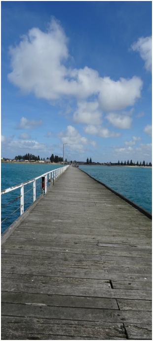 Onderweg het plaatsje Beachport aan gedaan waar een prachtige pier aan lag.