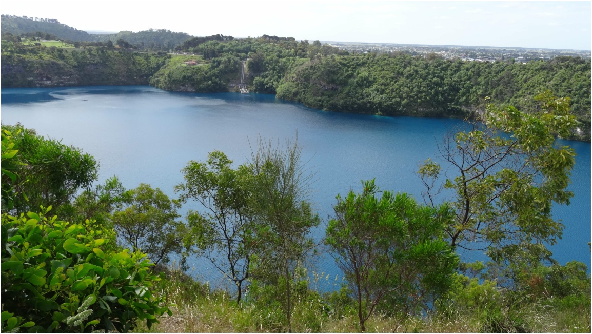 Het meer ligt bij Mount Gambier, een provinciestad tussen Adelaide en Melbourne, en is maar liefst 75 meter diep en gevuld met vulkaanwater.
