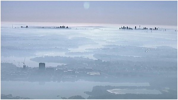 Sydney was gehuld in rook en smog en men gaf ons een negatief reis advies.