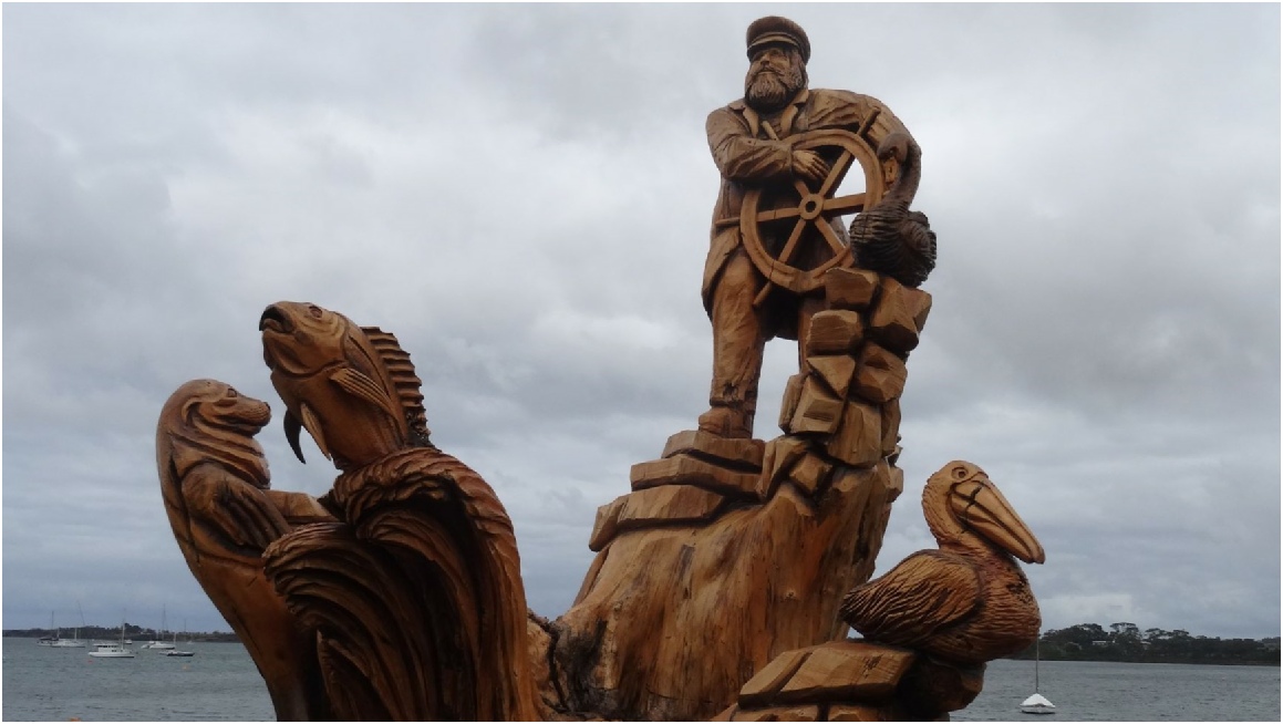 Vandaag hebben wij op Philip Island het kleine dorpje Rhyll bezocht waar een prachtig stuk houtsnijwerk stond.