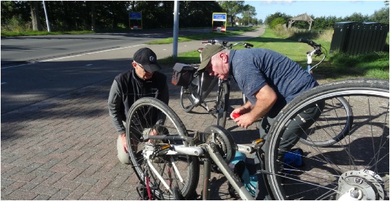 Wij hadden de hele tocht geen pech gehad, maar onze technische staf controleerde regelmatig de fietsen.