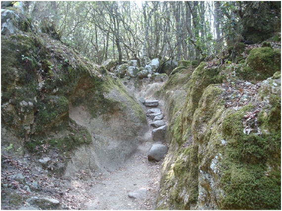 Een moeilijk begaanbaar pad naar boven.