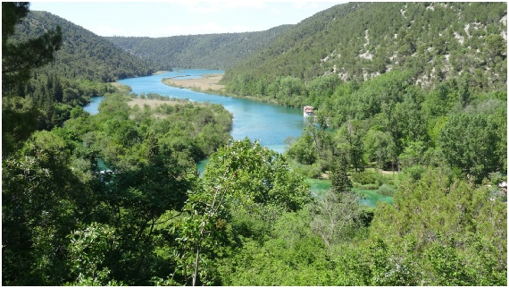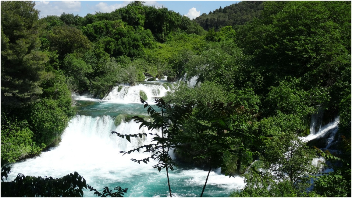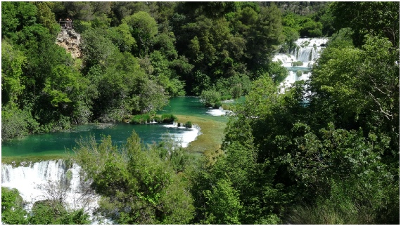 De Krkawatervallen in het nationaal park bestaan uit zeven uit kalksteen gevormde watervallen.