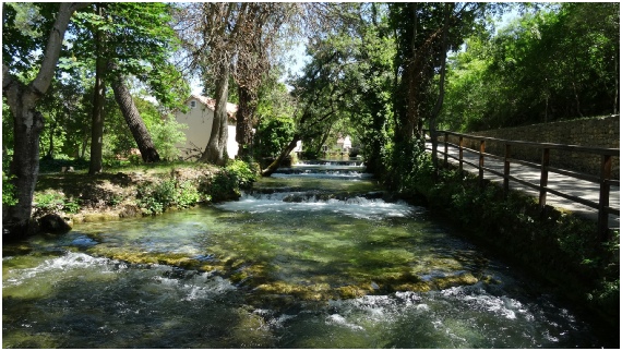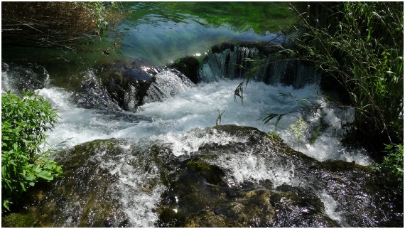 De rivier de Krka ontspringt aan de voet van het Dinaragebergte.