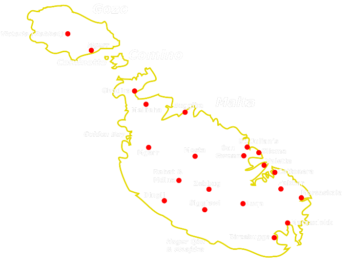 Qawra ligt ongeveer 10 km van Valletta.