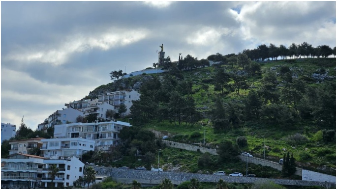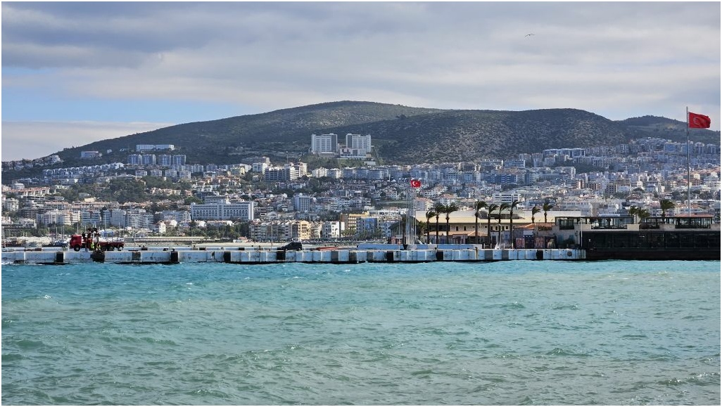 Boven een prachtig uitzicht naar Kuşadasi.