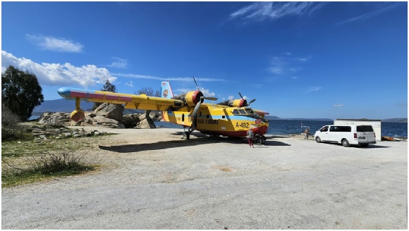 Een oud niet meer in gebruik blusvliegtuig bij het Bafa Gölü meer.