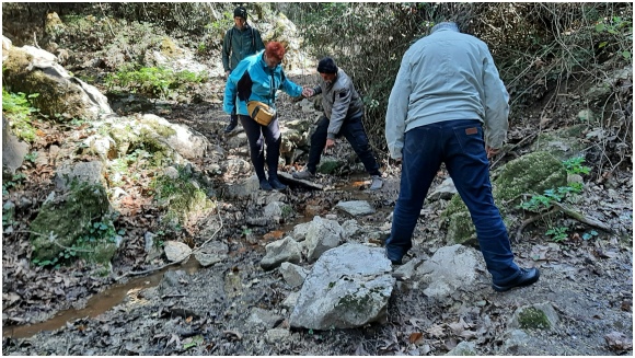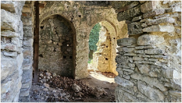 Diverse obstakels moesten worden genomen om bij de restanten van het klooster te komen.