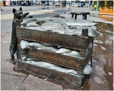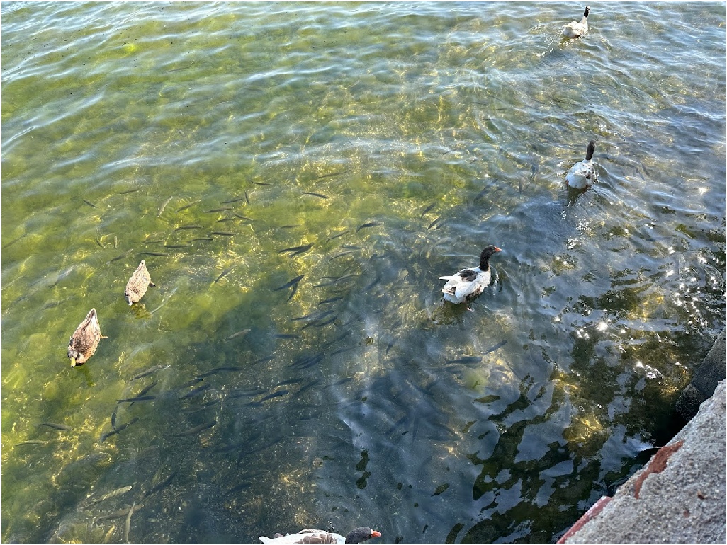 Tijdens onze lunch werden de vissen en eenden ook gevoerd.