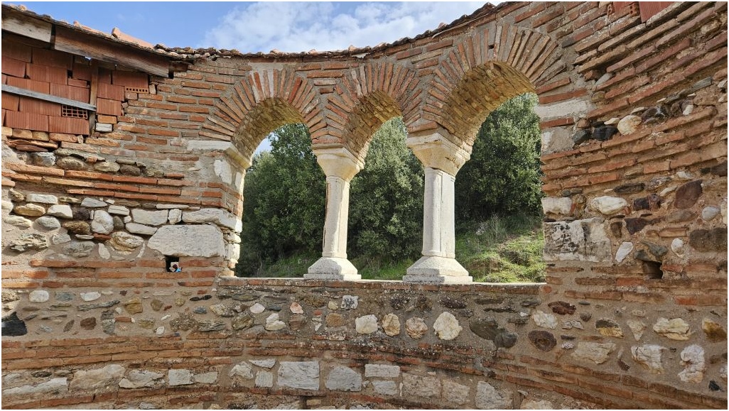Het klooster, dat uitkijkt over het prachtige uitzicht op Kusadasi en Davutlar, doet alsof het verborgen is voor het uitzicht omdat het zich tussen de bomen en planten bevindt.